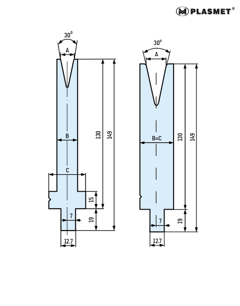 A=30mm, B=70mm, C=70mm