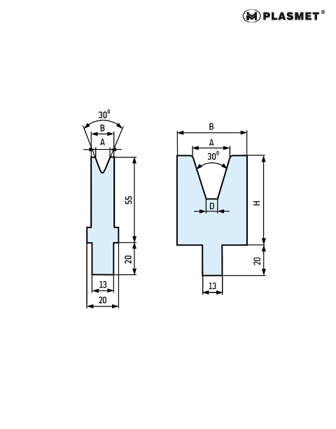 A=20mm, B=35mm, H=55mm