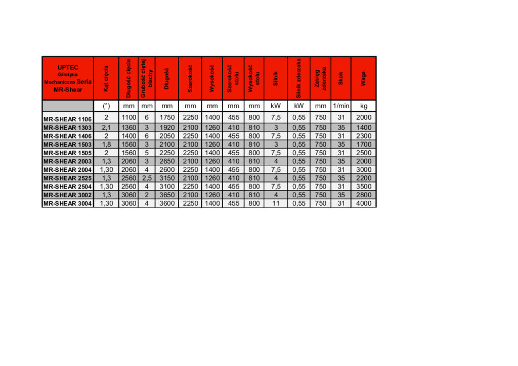Nożyce gilotynowe mechaniczne UPTEC seria MR-Shear są intuicyjne w obsłudze, co potwierdzają liczne pozytywne opinie użytkowników. Zmiana poszczególnych parametrów obróbki trwa zaledwie krótką chwilę. Narzędzia można z łatwością przystosować do indywidualnych potrzeb. Na wygodę pracy wpływa w dużej mierze pneumatyczne ramię podtrzymujące blachę, podświetlenie linii cięcia czy przenośny sterownik nożny z przyciskiem zatrzymania awaryjnego.